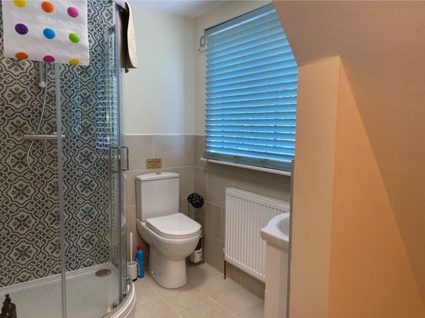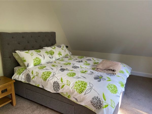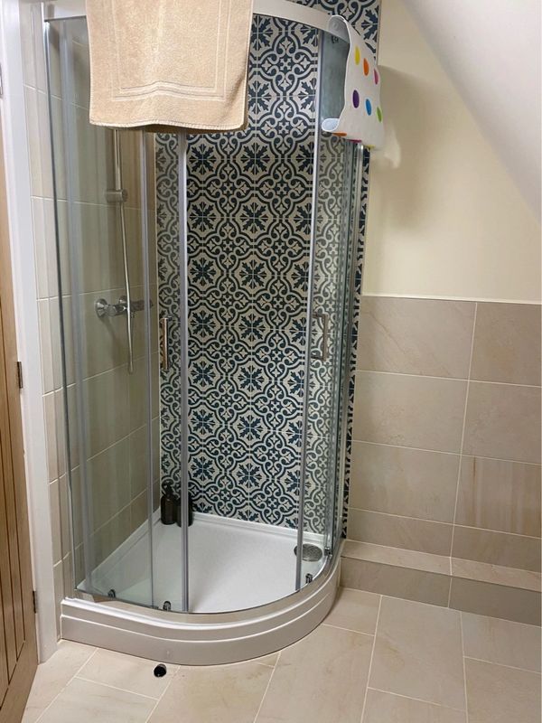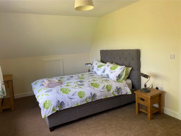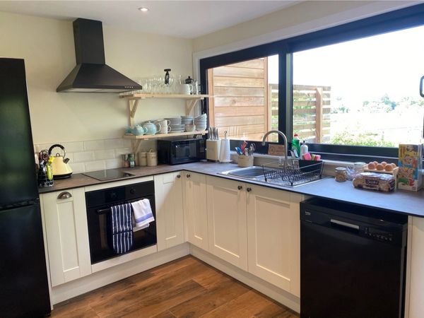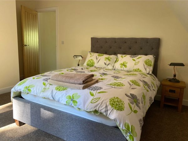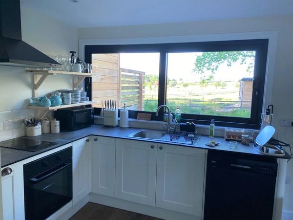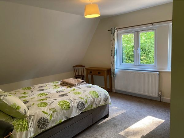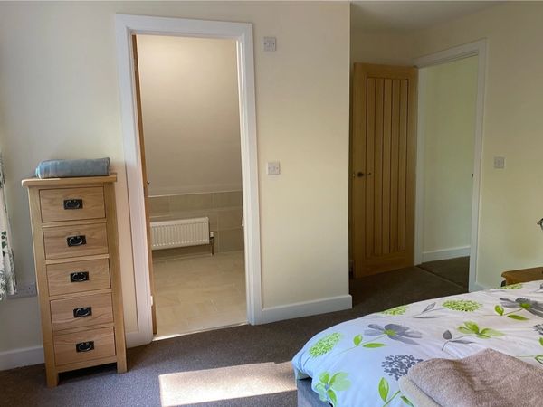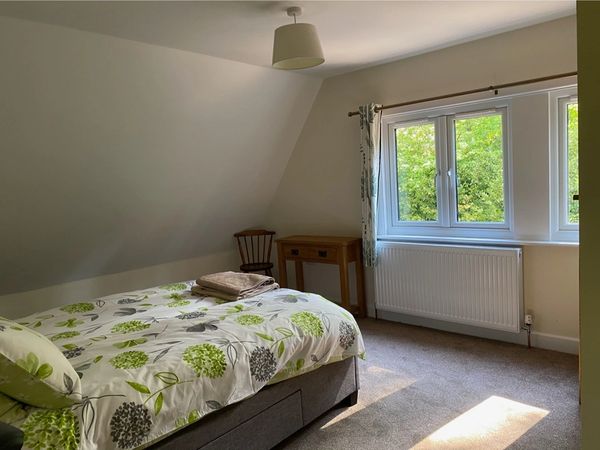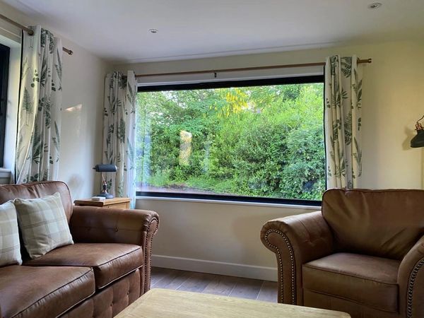 Upstairs there are two bedrooms with their own ensuite shower-rooms, each having large windows to make the most of the views of the countryside and trees; each room also has a cosy corner to sit and read in under the eaves.