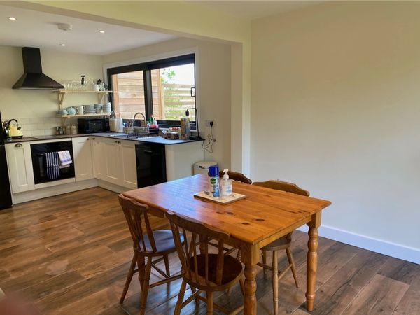 Downstairs the sliding doors open out onto the garden and there are new sliding windows all around to make the most of the views; the dividing walls have been removed as far as is structurally possible to create a lovely large light and open space for sitting on one side, dining on another and a well equipped kitchen on another.